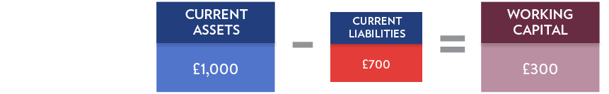 Current assets which are items such as stocks, accounts receivable and cash can be turned into cash relatively quickly. Equally current liabilities such as accounts payable and tax payments can demand cash at short notice; hence a positive working capital is a basic requirement for a business. If working capital is negative (more liabilities than assets) then the business has a potentially serious problem and action must be taken as swiftly as possible to move the working capital to positive. This may mean further injections of funds from the owners or raising long term loans. In both cases the funds will boost the cash and hence the current assets.